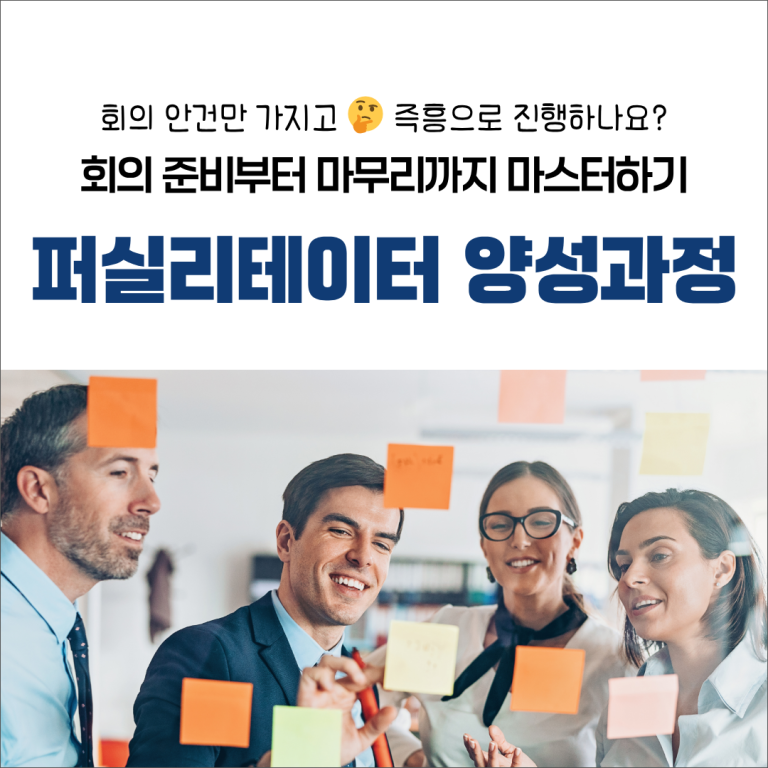 함께 대화하고, 일하는 방식을 바꿉니다대화로 신뢰를 만들고, 질문으로 리더십을 키우고, 회의로 성과를 만듭니다. 위드앤교육컨설팅은 리더, 구성원, 조직의 변화를 만듭니다.시민이 함께 논의하는 진짜 대화를 설계합니다시민이 참여하는 논의・의견이 연결되는 대화 ・합의로 이어지는 의사결정 시민의 생각이 집단지성으로 연결되고, 모두가 공감하는 정책 방향을 만듭니다. 교육 프로그램 수행사례 보러가기 인증제도 개선방안 도출 워크숍 [1차수] 위드앤교육컨설팅 네크워크 활성화를 위한 워크숍 위드앤교육컨설팅 소통과 협업을 촉진하는 퍼실리테이티브 회의 리더십 위드앤교육컨설팅 비즈니스 프레젠테이션 스킬 위드앤교육컨설팅 인사이트 칼럼 보러가기 회의 진행방법 l FOCUS 회의 기법으로 회의 참여 높이기 위드앤교육컨설팅 조회 397 · 2025-02-03 0 Play 팀원의 마음을 여는 질문의 기술 | 리더를 위한 WOW 전략 위드앤교육컨설팅 조회 379 · 2025-01-19 0 Play